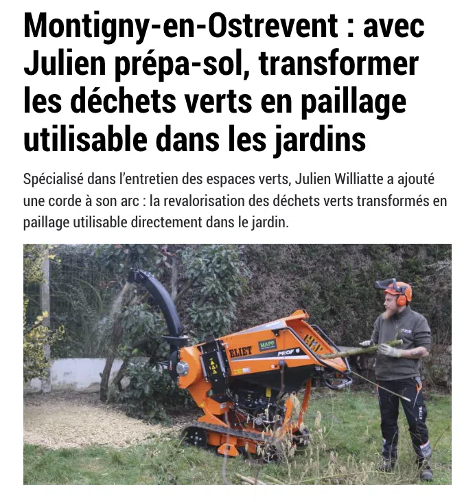 Stephanie Delbart8 Septembre 2025Trustindex vérifie que la source originale de l'avis est Google. Professionnel à l’écoute du client, travail très propre et soigné je recommande à 100% Carole Comble10 Août 2025Trustindex vérifie que la source originale de l'avis est Google. Julien est très efficace et super gentil Travail impeccable et soigné Je vous le recommande vivement Mic Mac5 Août 2025Trustindex vérifie que la source originale de l'avis est Google. Julien nous a été recommandé par un ami. Intervention pour refaire notre pelouse vielle de 25 années. Très bon diagnostic et bonnes explications. Travail très professionnel avec un matériel de haute qualité Le résultat est parfait après un démarrage de pousse laborieux dû à la période de canicule. Le résultat est là belle pelouse bien.drue et bien verte Je recommandé sans réserve Pascale Dubois7 Juillet 2025Trustindex vérifie que la source originale de l'avis est Google. Phénoménal! Un travail gigantesque, réalisé dans les délais,! Julien a su redonner vie à notre jardin, c un travailleur acharné, sérieux et très compétent! Nous sommes éblouis du résultat! Entreprise excellente en tous points! Bravo Anais Kalmucki20 Juin 2025Trustindex vérifie que la source originale de l'avis est Google. Nous avons fait intervenir Julien pour une lignée complète de cyprès. Le travail effectué est un travail de titan et le rendu est plus que satisfaisant!! Nous recommandons cette entreprise à 100%. Sandrine FOSSIEZ29 Mai 2025Trustindex vérifie que la source originale de l'avis est Google. Nous avons fait appel à JULIEN PRÉPA SOLS pour enlever une haie dans notre jardin et procéder à une taille japonaise de nos arbustes. Travail soigné, professionnalisme, conseils, goût du travail bien fait, méticuleux. Après son passage, on n’avait pas l’impression qu’il y avait eu un sacré chantier tellement tout était propre. Nous le recommandons +++++++ Lolo Wtr5 Avril 2025Trustindex vérifie que la source originale de l'avis est Google. Un travail sérieux et de qualité ! Nous n’hésiterons pas à faire appel à Julien à nouveau Nous recommandons Guillaume Pichenot15 Février 2025Trustindex vérifie que la source originale de l'avis est Google. Nous avons fait intervenir Julien pour broyer 2 gros monts de branches et élaguer quelques arbres. Tout s’est parfaitement déroulé. Du devis très rapide, au travail avec professionnalisme et persévérance. Très bonne communication et aide pour créer les comptes Crédit d’impôt. Nous recommandons fortement. Julien Ramon27 Janvier 2025Trustindex vérifie que la source originale de l'avis est Google. Julien s'est occupé de renouvellement de mon gazon. L'analyse, le devis puis le chantier se sont bien déroulé. Je le recommande. Jj Lebas4 Janvier 2025Trustindex vérifie que la source originale de l'avis est Google. Nous remercions Julien d’avoir mis à profit ses compétences professionnelles pour réaliser notre projet. Nous observons que Julien est passionné par son métier, cela se concrétise dans la rigueur et la qualité du travail éffectué. Si vous avez des travaux de taille de haie, tonte, élagage ou aménagement de vos sols, nous vous recommandons Julien. Il est à noter que les devis sont rapides et cela est déductible de vos impôts.Évaluation Google : 5.0 sur 5, Basée sur 15 avisCertifié par: TrustindexLe badge vérifié de Trustindex est le symbole universel de confiance. Seules les meilleures entreprises peuvent obtenir le badge vérifié, avec une note supérieure à 4.5, basée sur les avis des clients au cours des derniers 12 mois. En savoir plus