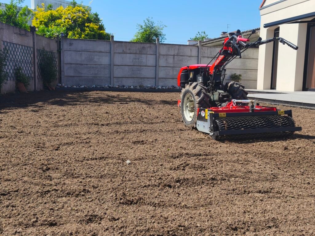 Ensuite, nous effectuons un labour ou un bêchage en profondeur pour aérer le sol et le rendre plus fertile. Le nivellement du sol assure une surface plane et stable, prête à accueillir vos massifs, potagers ou gazons.