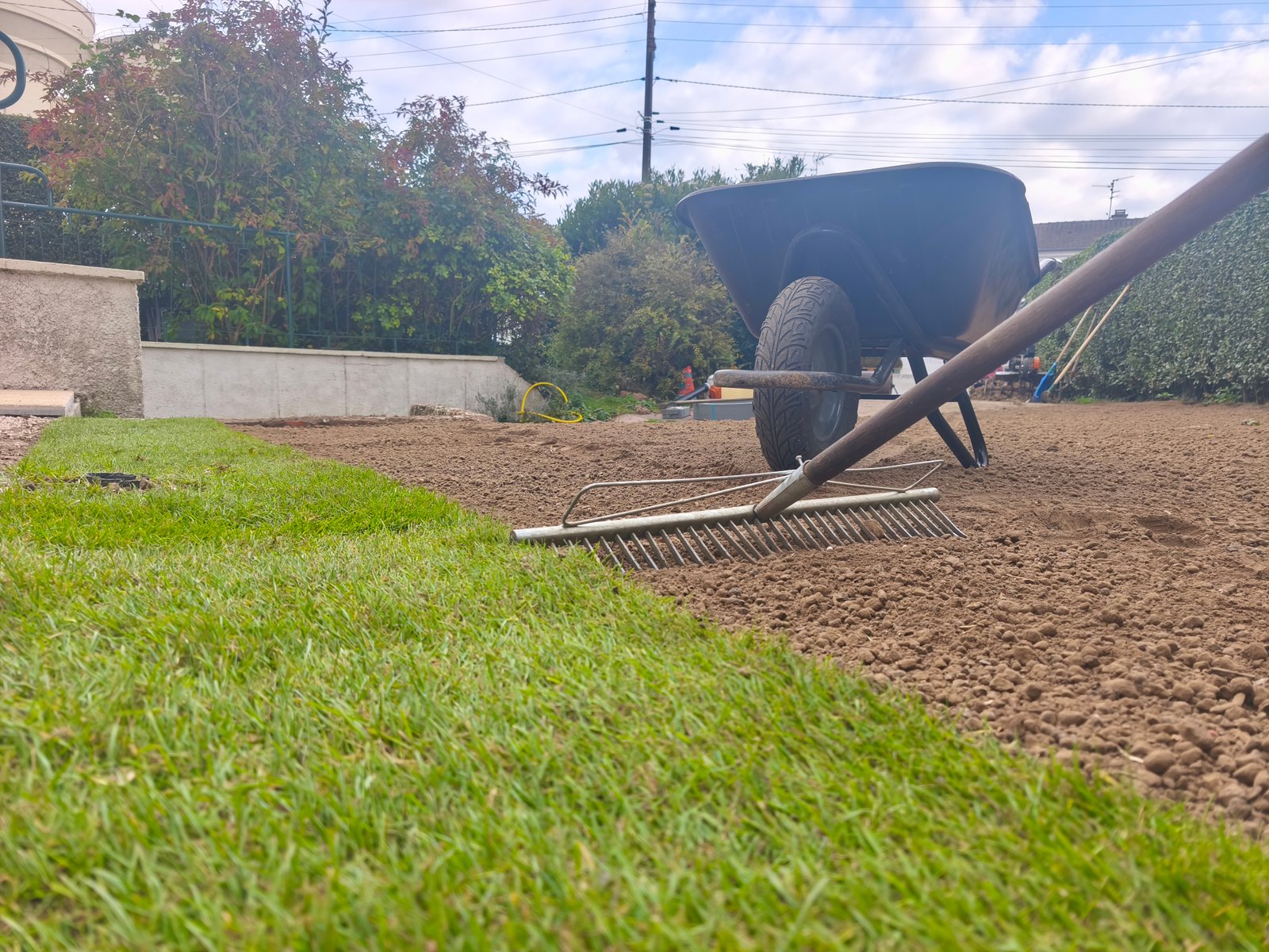 Décaissement avant pose d’un gazon en plaques.
