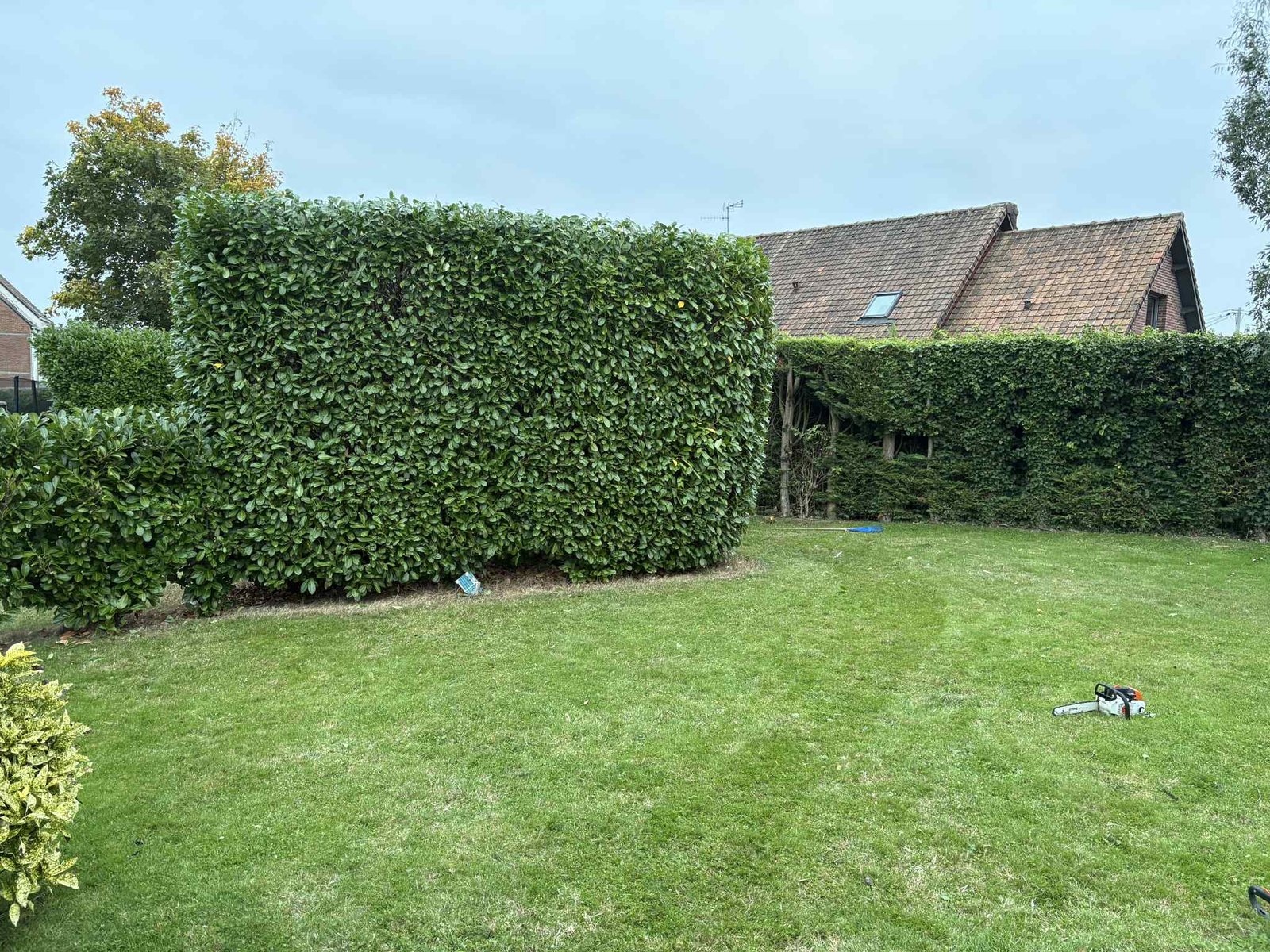 Rabattage de Laurier Cerise à Montigny-en-Ostrevent (59182), dans le Nord.